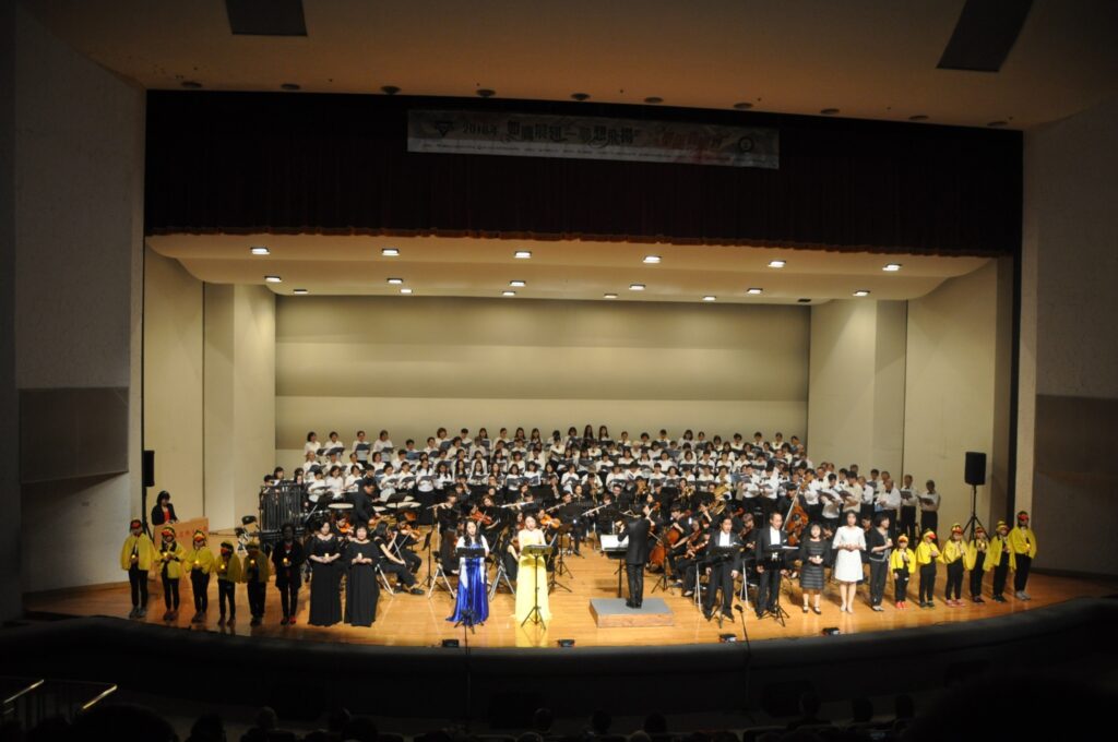 107年 辦理「如鷹展翅-夢想飛揚」大型音樂會,邀請蔡盛通教授為聖誕音樂編曲,全台首演。