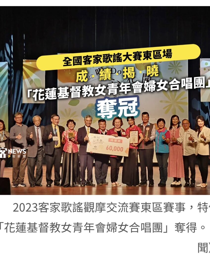 112年 本會婦女合唱團參與客家歌謠交流觀摩賽 演唱「鮮鮮河水」,榮獲東區「特優」獎。